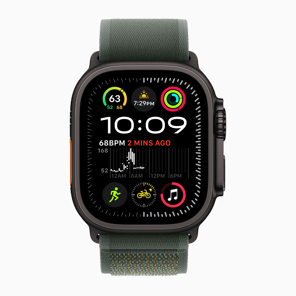 Apple Watch Ultra 2 созданы для непревзойденной производительности. Легкий титановый корпус прочен и устойчив к коррозии, а приподнятый корпус защищает сапфировое стекло от ударов по краям.