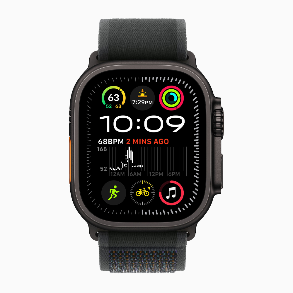 Apple Watch Ultra 2 созданы для непревзойденной производительности. Легкий титановый корпус прочен и устойчив к коррозии, а приподнятый корпус защищает сапфировое стекло от ударов по краям.