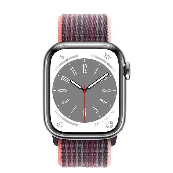Apple Watch Series 8 41мм серебристый корпус из нержавеющей стали и ремешок Sport Loop Elderberry