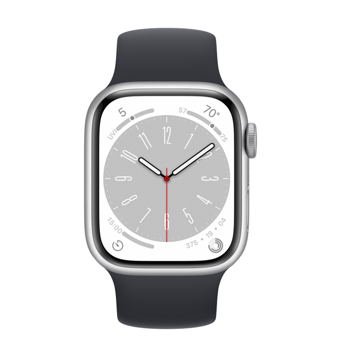 Apple Watch Series 8 45мм серебристый корпус из алюминия и ремешок Solo Loop Midnight