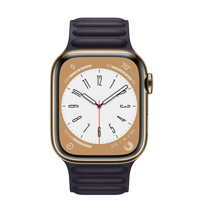 Apple Watch Series 8 45мм золотой корпус из нержавеющей стали и ремешок Leather Link Ink