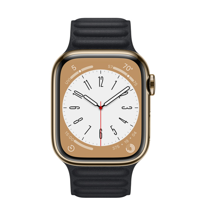 Apple Watch Series 8 45мм золотой корпус из нержавеющей стали и ремешок Leather Link Midnight
