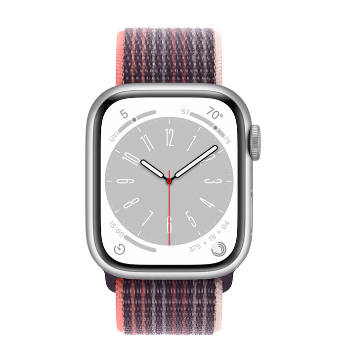 Apple Watch Series 8 45мм серебристый корпус из алюминия и ремешок Sport Loop Elderberry