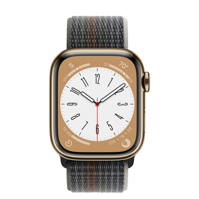 Apple Watch Series 8 45мм золотой корпус из нержавеющей стали и ремешок Sport Loop Midnight