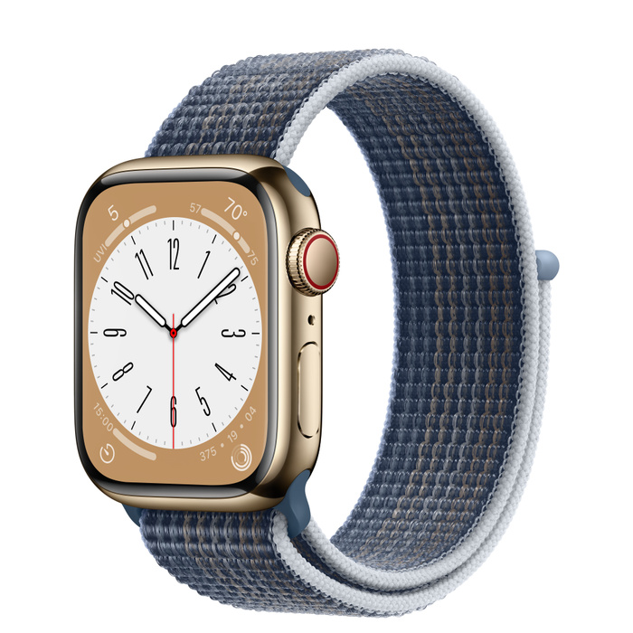 Apple Watch Series 8 45мм золотой корпус из нержавеющей стали и ремешок Sport Loop Storm Blue