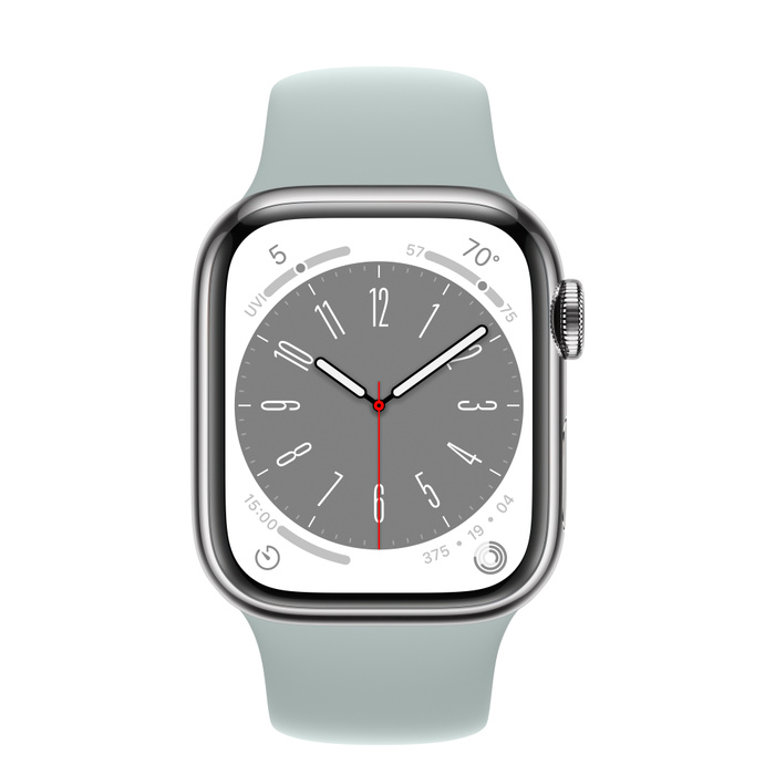 Apple Watch Series 8 45мм серебристый корпус из нержавеющей стали и ремешок Sport Band Succulent