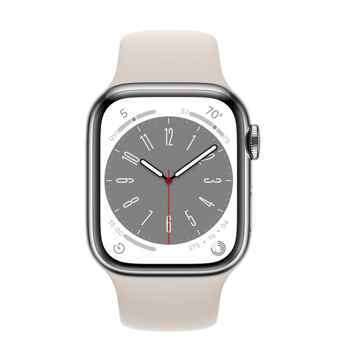 Apple Watch Series 8 45мм серебристый корпус из нержавеющей стали и ремешок Sport Band Starlight