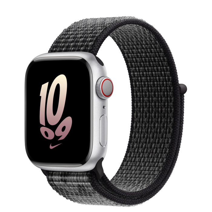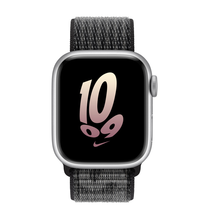 Apple Watch Series 8 45мм серебристый корпус из алюминия и ремешок Nike Sport Loop Black Summit White