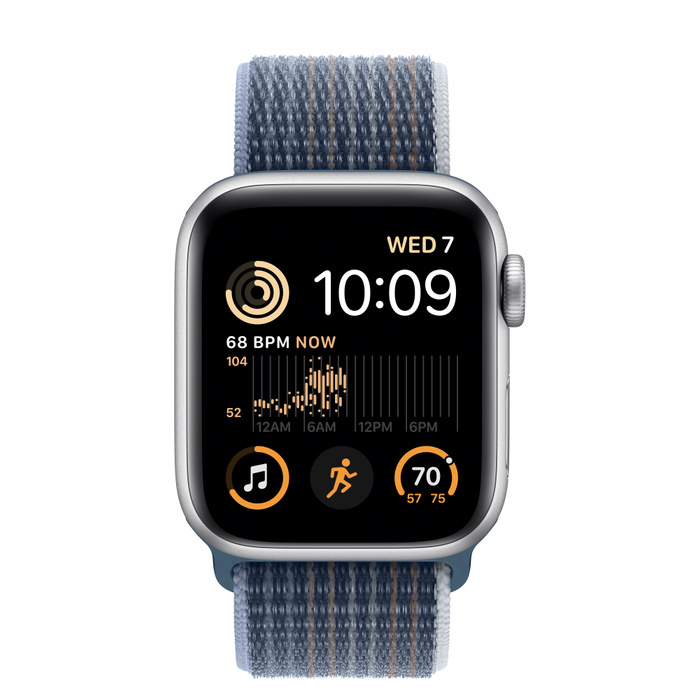 Apple Watch Series SE 2022 40мм серебристый корпус из алюминия и ремешок Sport Loop Storm Blue