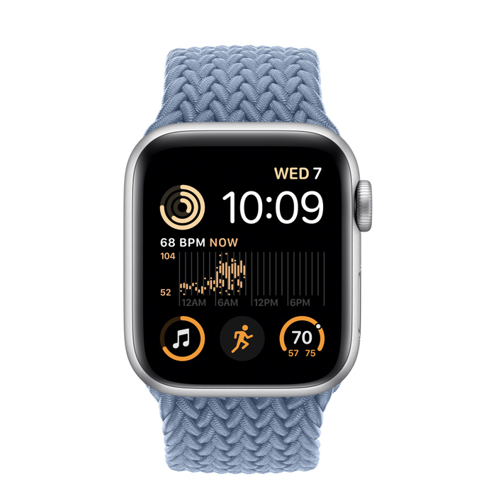 Apple Watch Series SE 2022 40мм серебристый корпус из алюминия и ремешок Braided Solo Loop Slate Blue