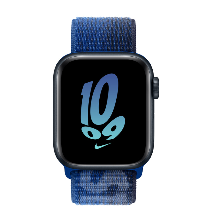 Apple Watch Series SE 2022 40мм корпус из алюминия "полночь" и ремешок Nike Sport Loop Game Royal Midnight Navy