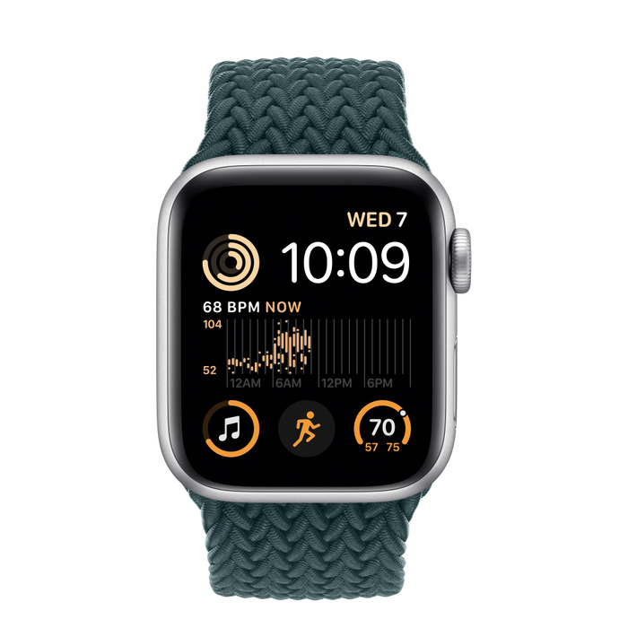 Apple Watch Series SE 2022 44мм серебристый корпус из алюминия и ремешок Braided Solo Loop Rainforest